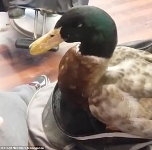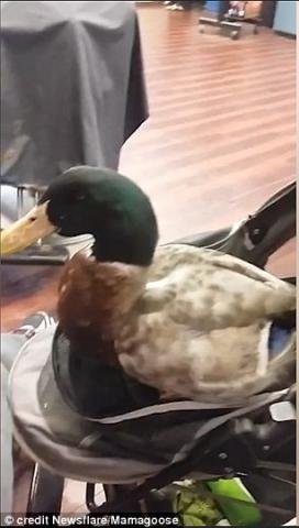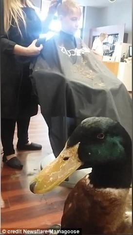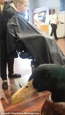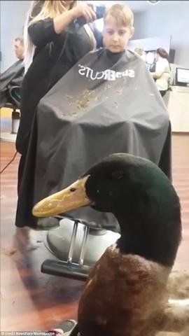美國一名男童一理發(fā)就緊張 靠鴨子陪伴來緩解